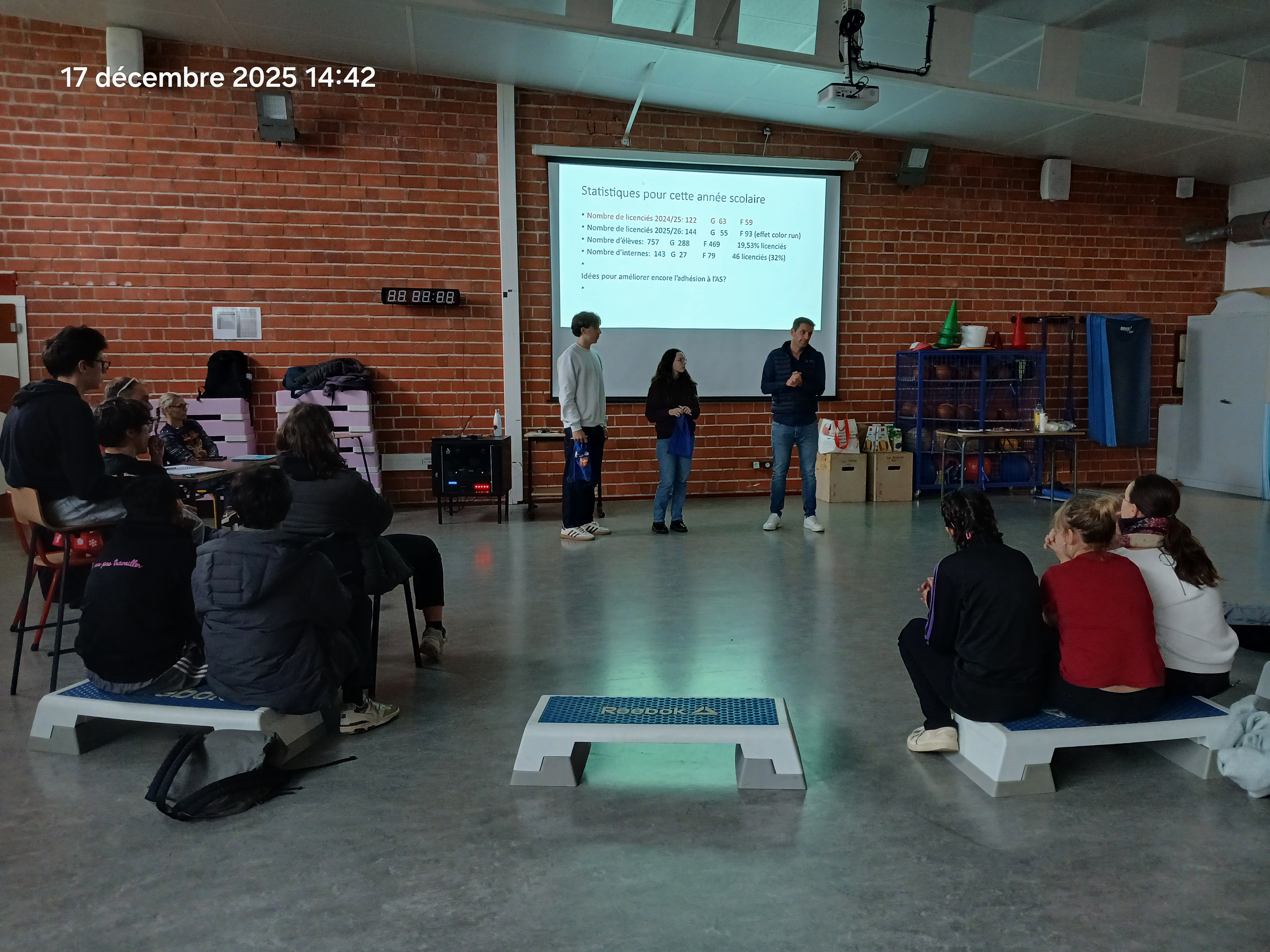 C'est mercredi 17 décembre que s'est tenue l'Assemblée Générale de l'Association Sportive du Lycée, durant laquelle les Jeunes Officiels validés de niveau départemental ou académique se sont vus remettre par M.Louchaert, directeur départemental de l'UNSS, un Kit Jeune Officiel (sac, sifflet et brassard).